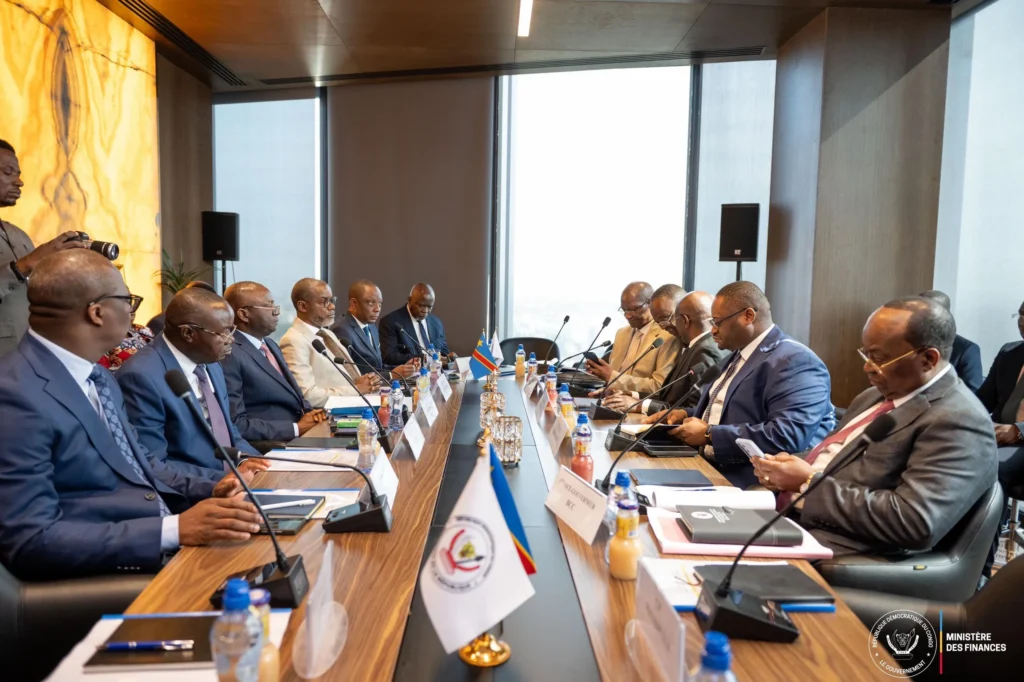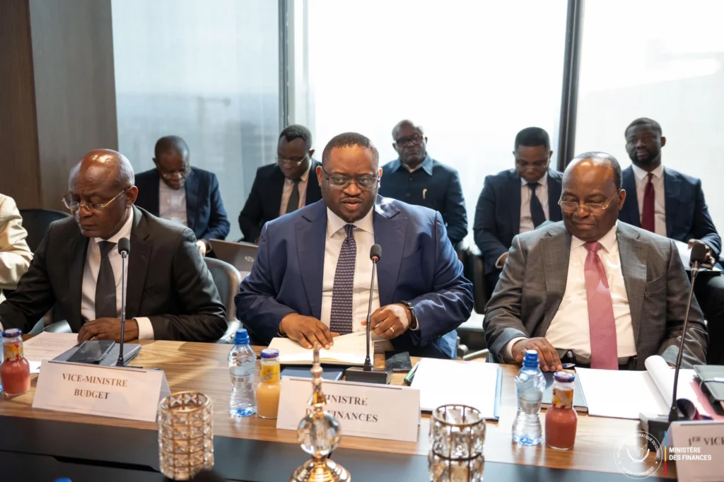 Ont pris part à cette séance de travail le Vice-ministre du Budget, le Premier Vice-gouverneur de la Banque centrale du Congo, le Directeur de cabinet adjoint de la Première Ministre, le CTR, le COREF, la DTMF, l’ISS, ainsi que les experts du Ministère du Budget et du Ministère des Finances, témoignant de la coordination interinstitutionnelle renforcée autour des priorités économiques nationales.